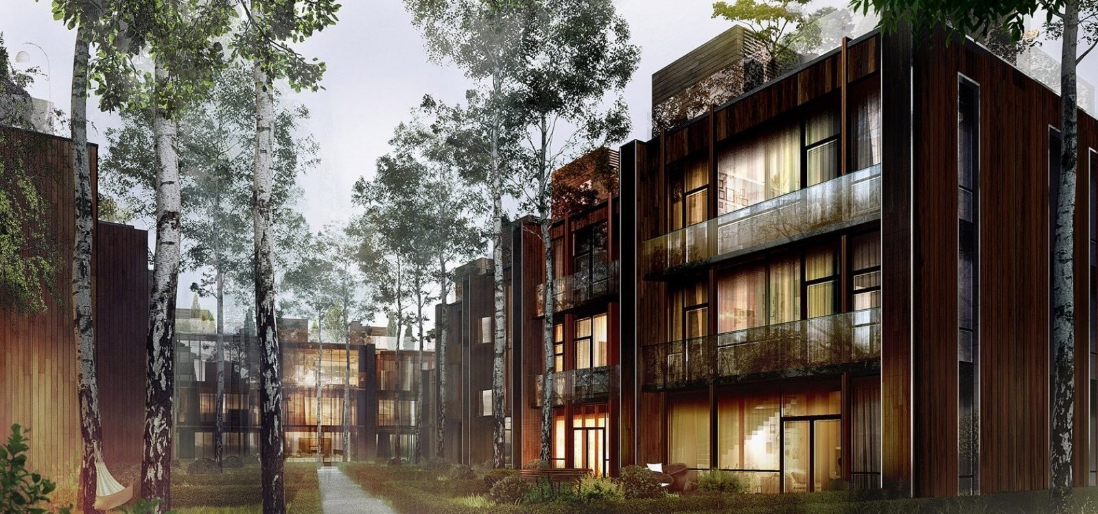 Futuro Park is located 23 km from the Moscow Ring Road. Despite the short distance from New Riga - 3-5 minutes by car - it is always quiet and comfortable: townhouses are built on an elevated position and surrounded on both sides by golf courses of the neighboring elite residence. The perimeter of the village is planted with pine trees.
