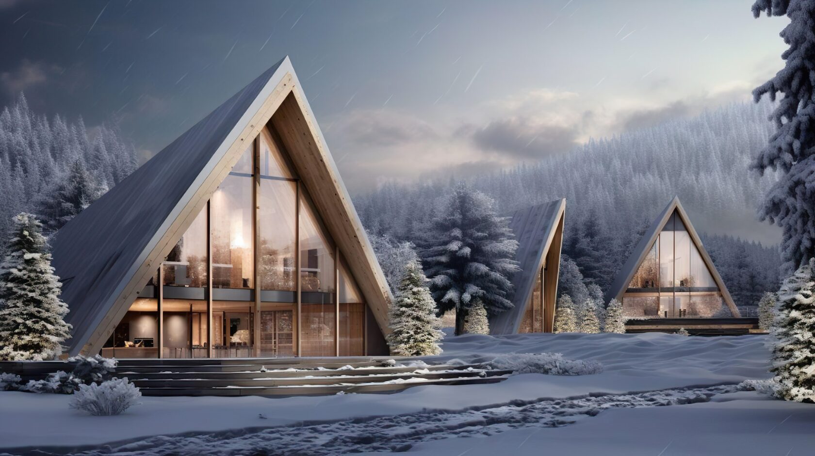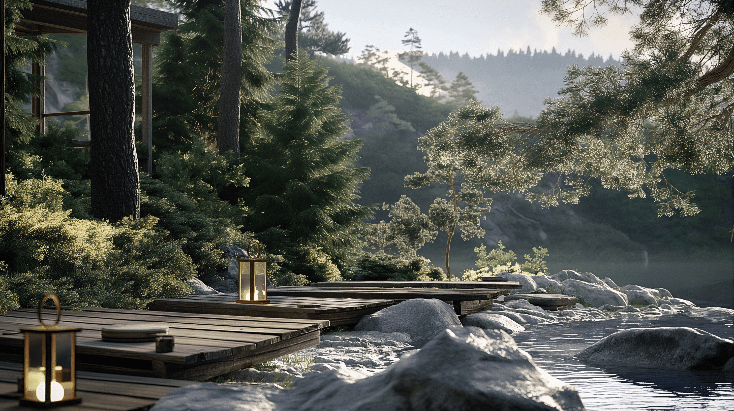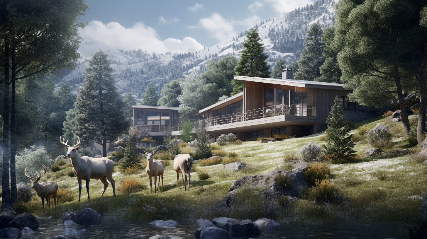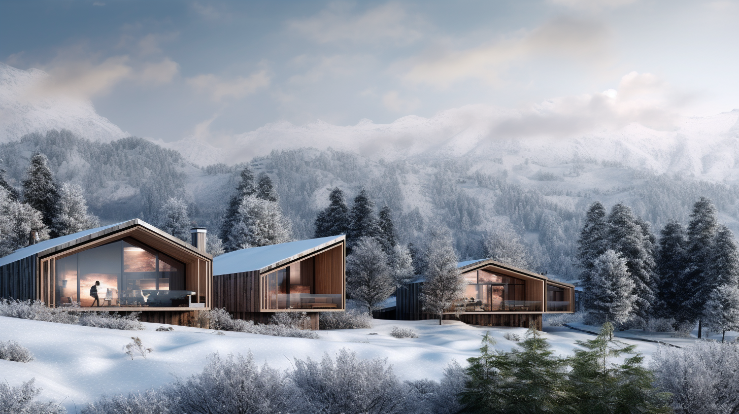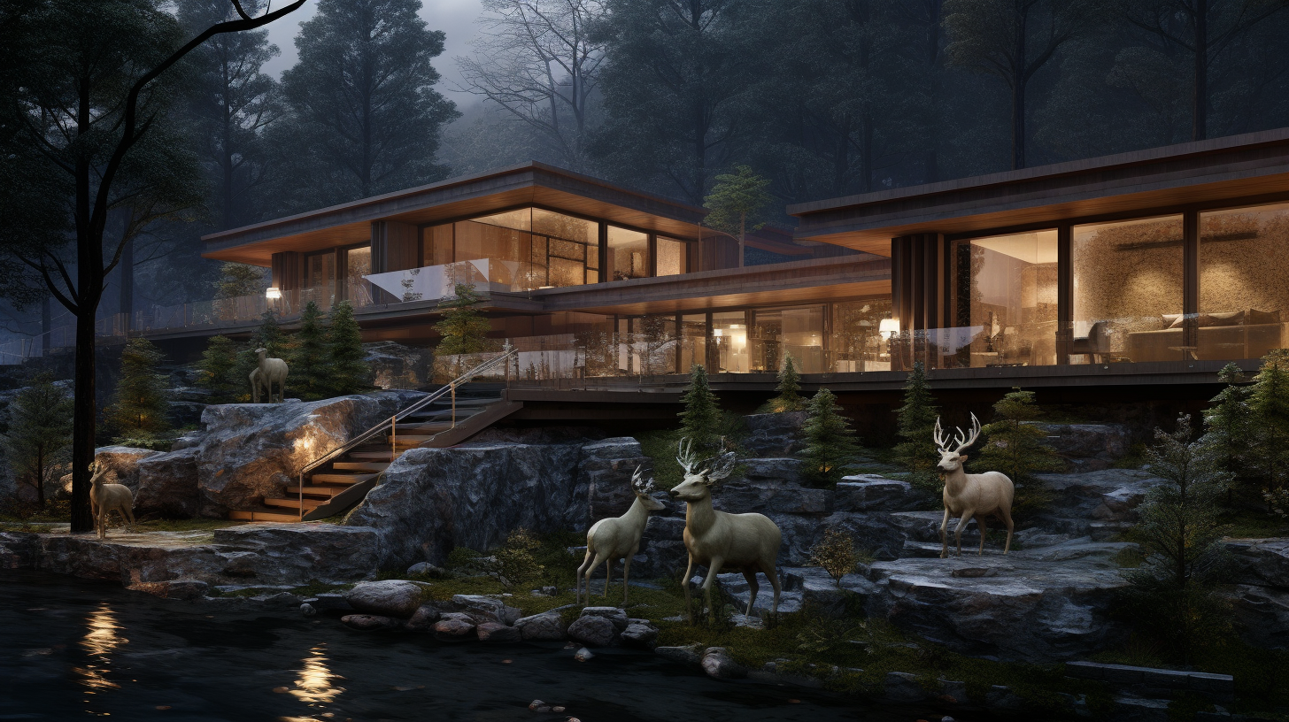 проектируемые здания корпусов и домов для краткосрочной аренды выполнены из дерева с большой площадью остекления для усиления чувства слияния с природой.