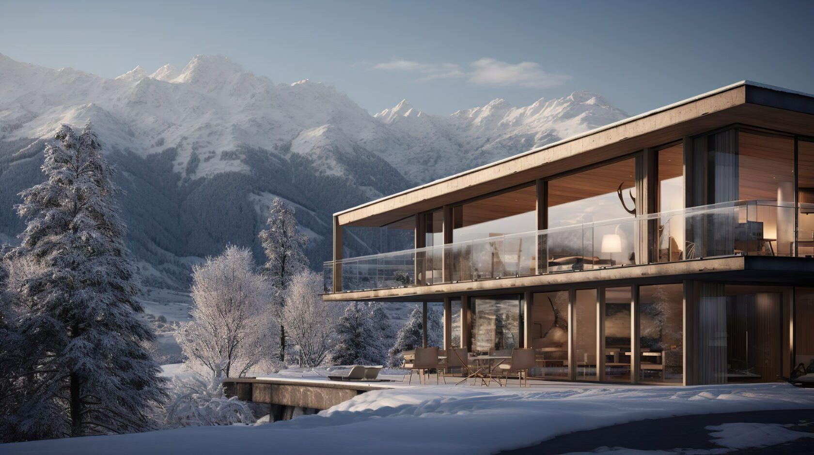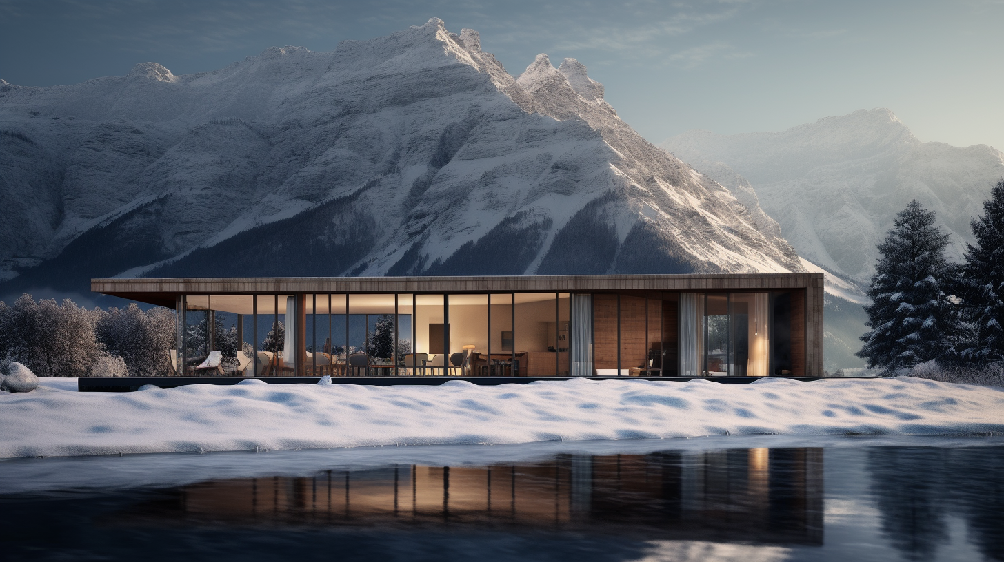 пространства интерьера выглядит невероятно просторным и воздушным благодаря огромным панорамным окнам. Эта игра света и тени, прозрачности и текстуры создает ощущение единения с окружающей природой. Вы будто находитесь в уютном, защищенном убежище, откуда открывается захватывающий вид на окружающий пейзаж