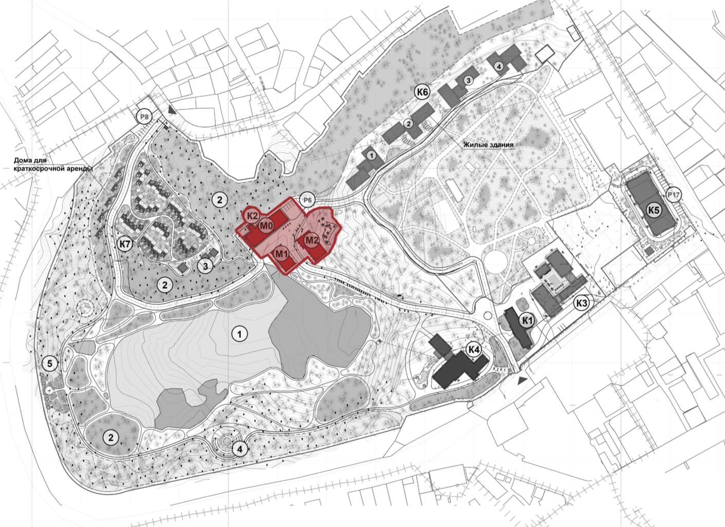 The therapeutic center, or more precisely the complex of buildings of the therapeutic center consists of 3 freestanding buildings, one of which is an existing reconstructed volume.